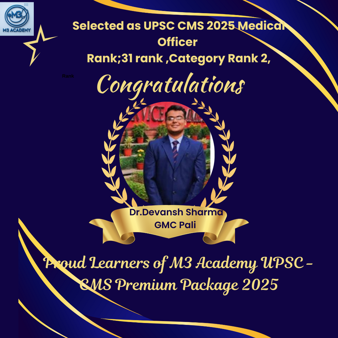 “M3 Academy is one of the best apps available exclusively for UPSC CMS aspirants. Thank you."